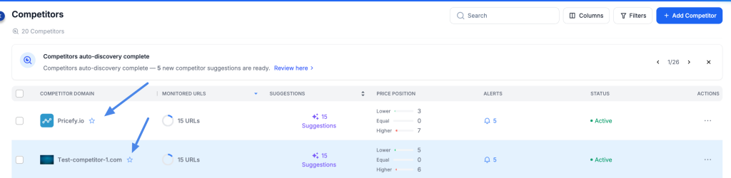 They’ll always appear at the top of your competitors list, even if a different default sorting order would normally apply.