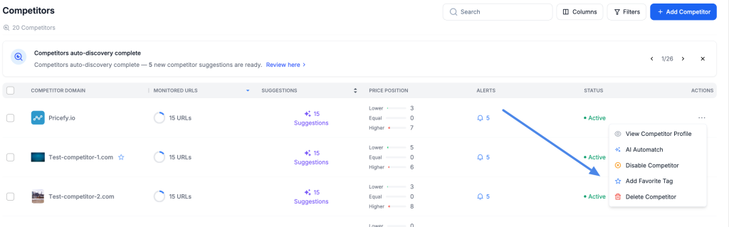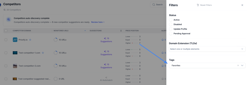 You can now organize your competitors using Tags. Tags help you quickly identify and filter key competitors inside your list.